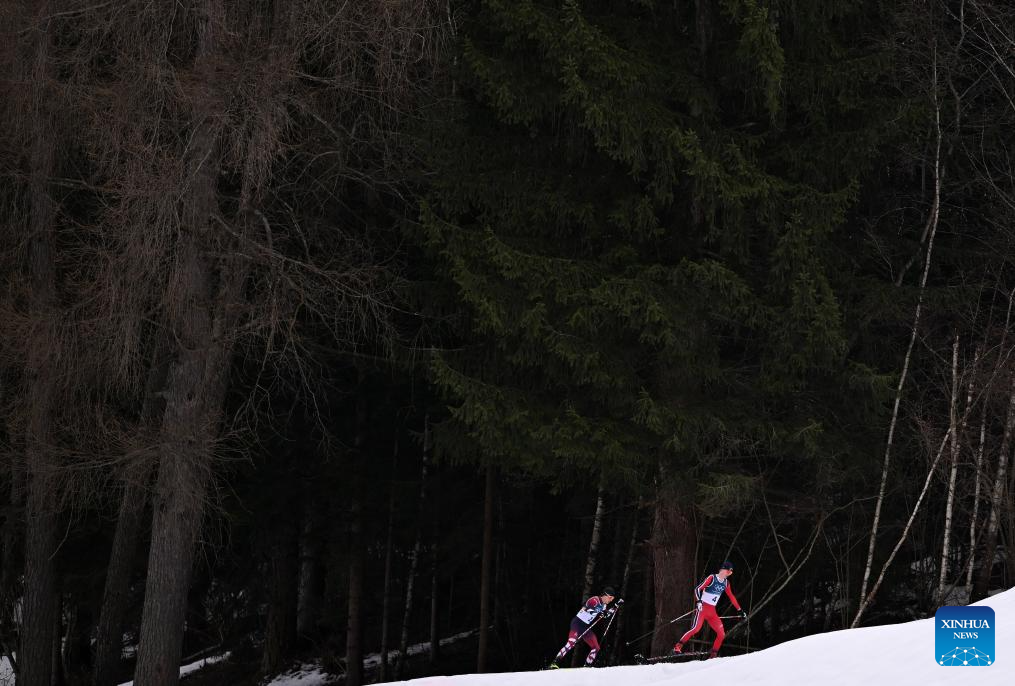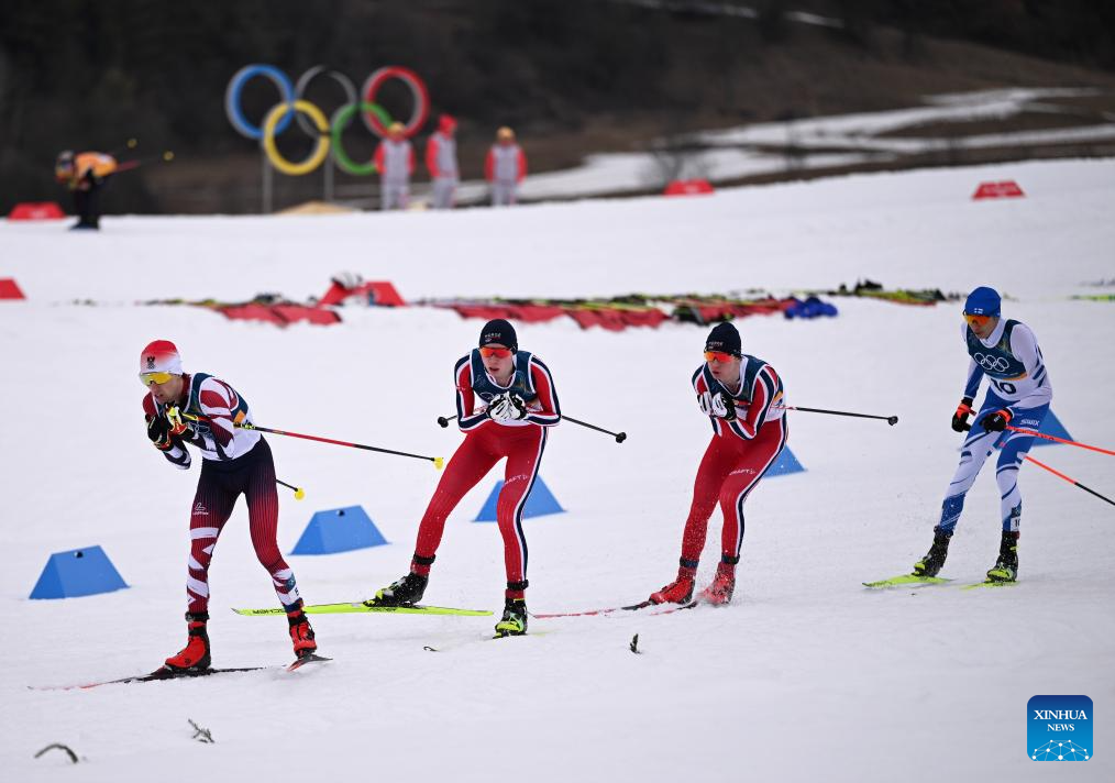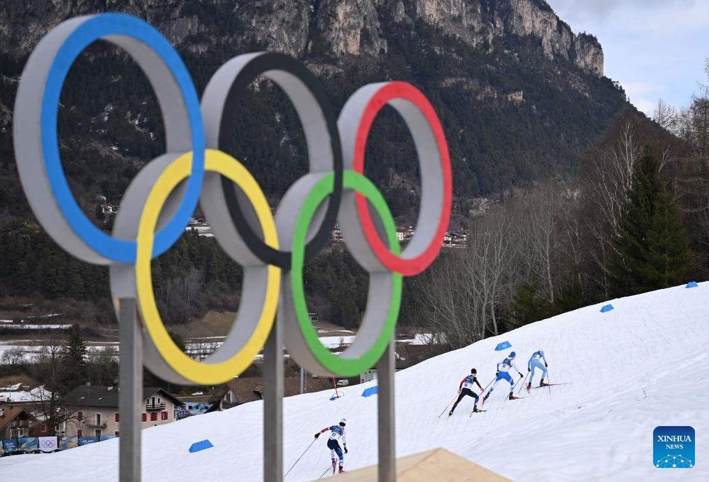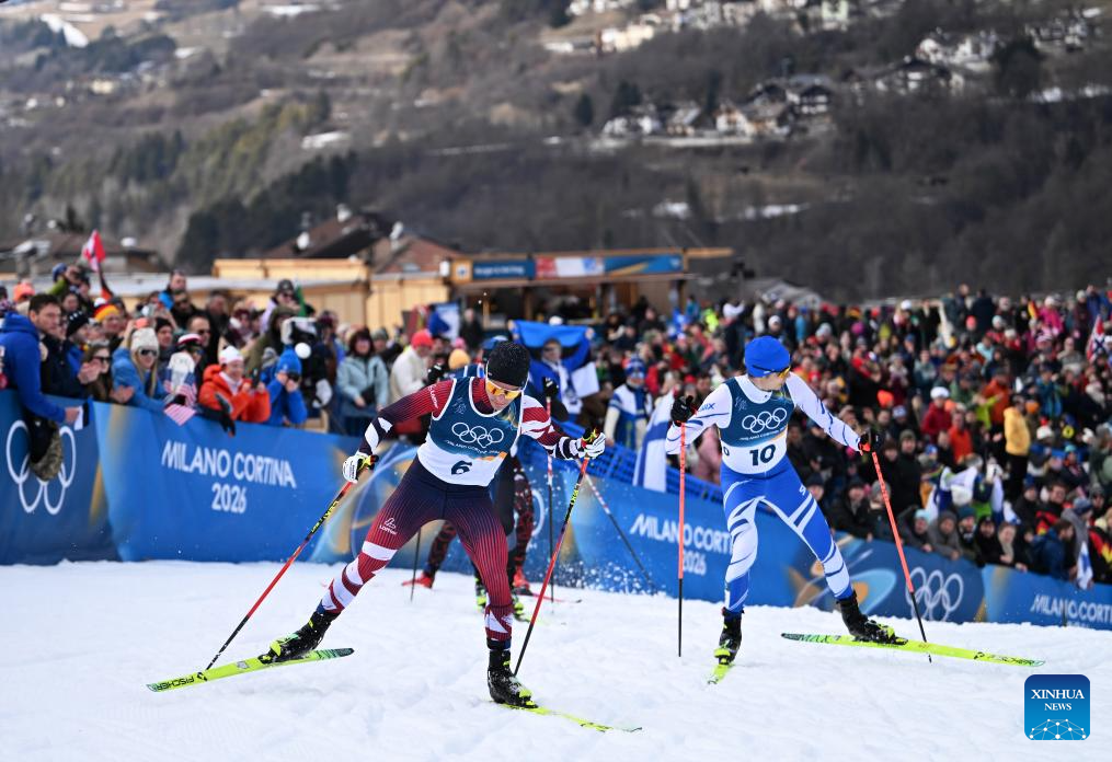 Athletes compete during the Cross-Country competition of Nordic Combined Individual Gundersen Normal Hill/10km at the Milan-Cortina 2026 Olympic Winter Games in Tesero, Italy, Feb. 11, 2026. (Xinhua/He Canling)