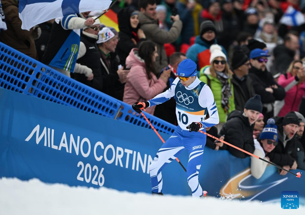Eero Hirvonen of Finland competes during the Cross-Country competition of Nordic Combined Individual Gundersen Normal Hill/10km at the Milan-Cortina 2026 Olympic Winter Games in Tesero, Italy, Feb. 11, 2026. (Xinhua/He Canling)