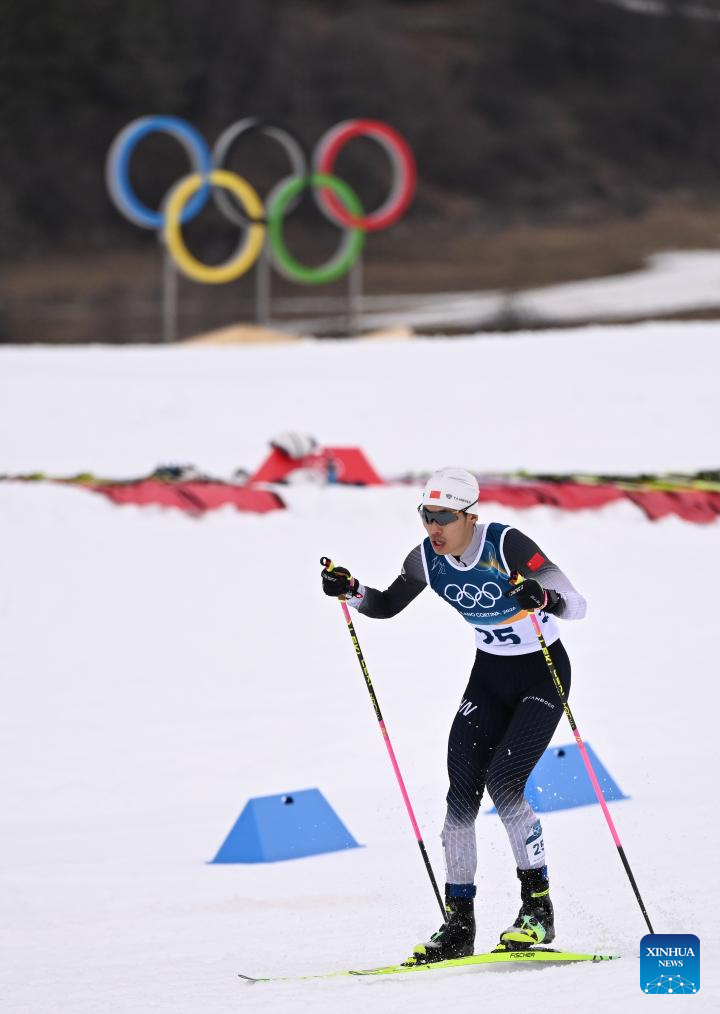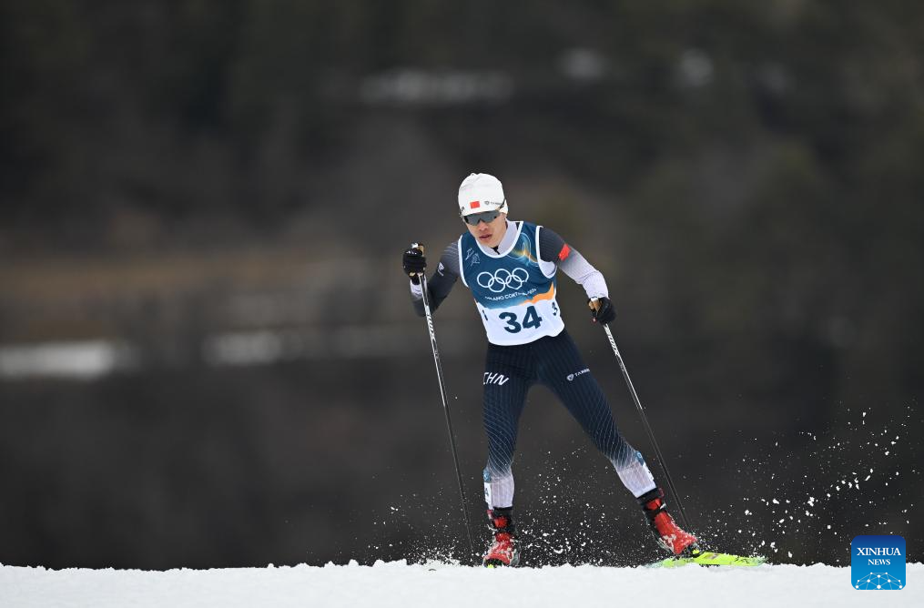 Zhao Zihe of China competes during the Cross-Country competition of Nordic Combined Individual Gundersen Normal Hill/10km at the Milan-Cortina 2026 Olympic Winter Games in Tesero, Italy, Feb. 11, 2026. (Xinhua/Peng Ziyang)