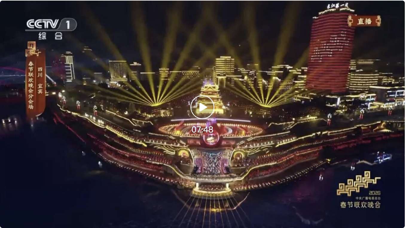 总台马年春晚,四川宜宾分会场以“万里长江第一城”的壮阔江景为天然舞台,以“立上游”为核心主题,年俗“请春酒”贯穿全场,向全球观众展示了三江六岸的独特风光,尽显巴蜀文化的深厚底蕴。