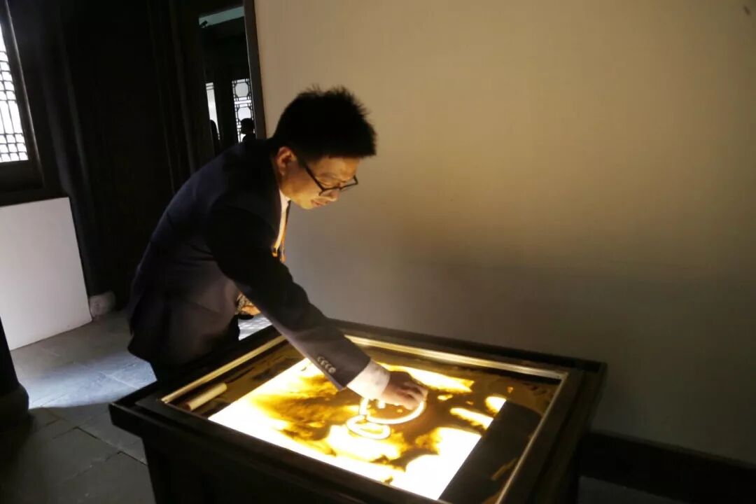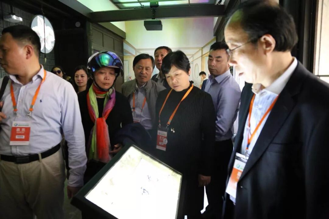 18日下午,嘉宾们分别前往周恩来同志故居、淮安官署、吴承恩故居、沈坤状元府等地参观。嘉宾们不仅仔细聆听了导游的解说,还忍不住亲身体验起来:有的嘉宾弓下腰努力提起石头哑铃;有的嘉宾忍不住在沙画上花了个笑脸;有的嘉宾在电子显示屏上留下字迹……