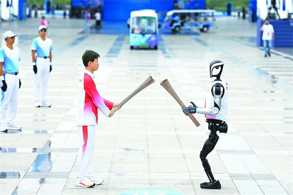 其中最矚目的是0號火炬手——人形機械人「夸父」。由深圳樂聚智能研發的「夸父」,搭載新型運動控制算法,可在斜坡等複雜地形穩定奔跑;並通過華為與中國移動的5G-A網絡實現遠程控制,毋須技術人員陪跑。