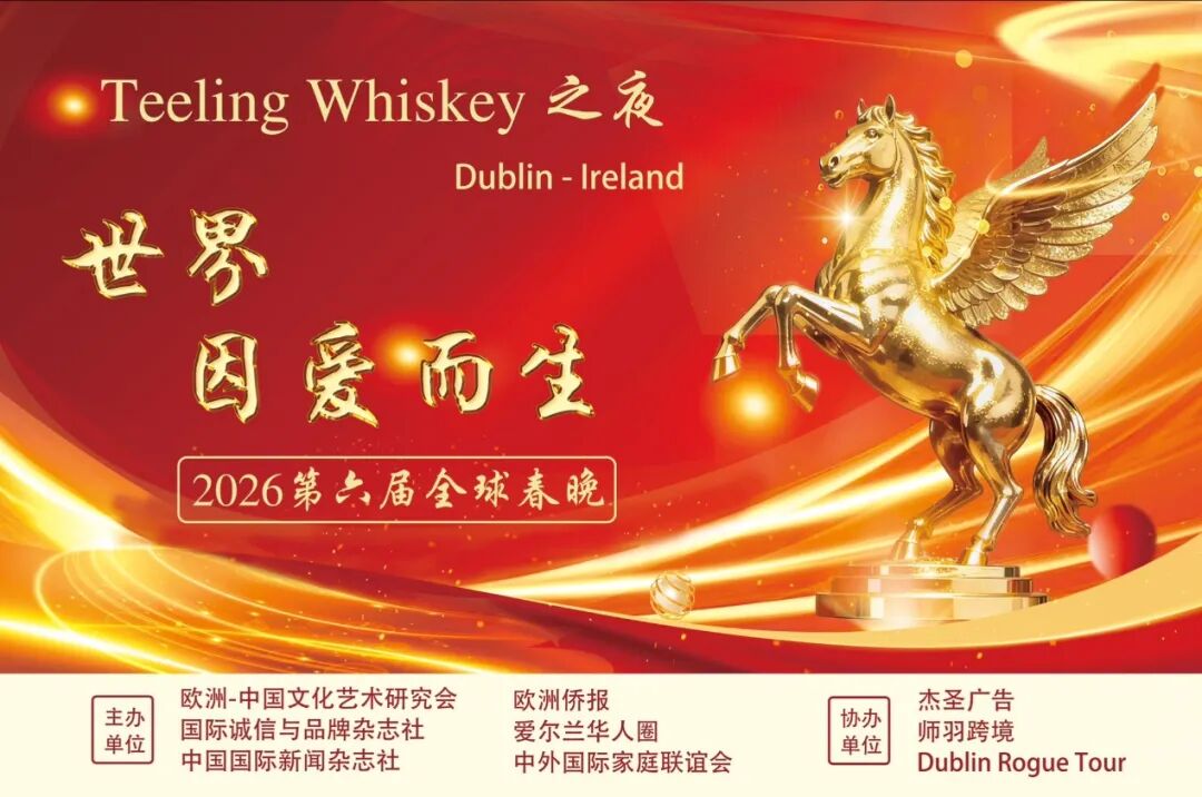 2026年2月20日,都柏林 Teeling Whiskey 酒厂的春晚灯火辉煌。当人们在为第六届“世界因爱而生”全球春晚的圆满落幕而欢呼时,在组委会主席团的席位上,有一位神色谦逊而深邃的青年人。