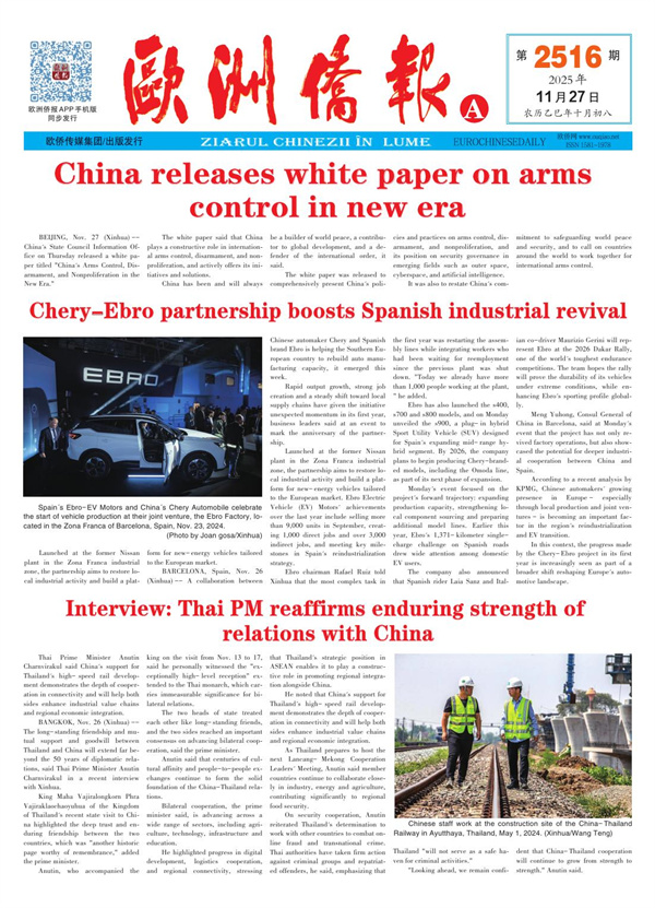 11月27日发行2516期《欧洲侨报》电子版