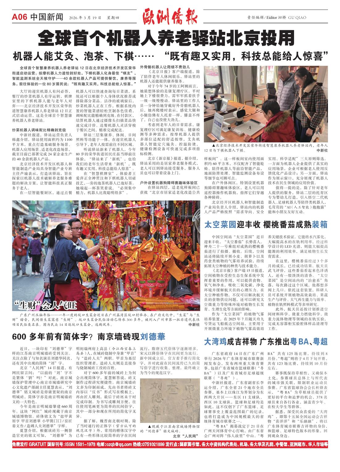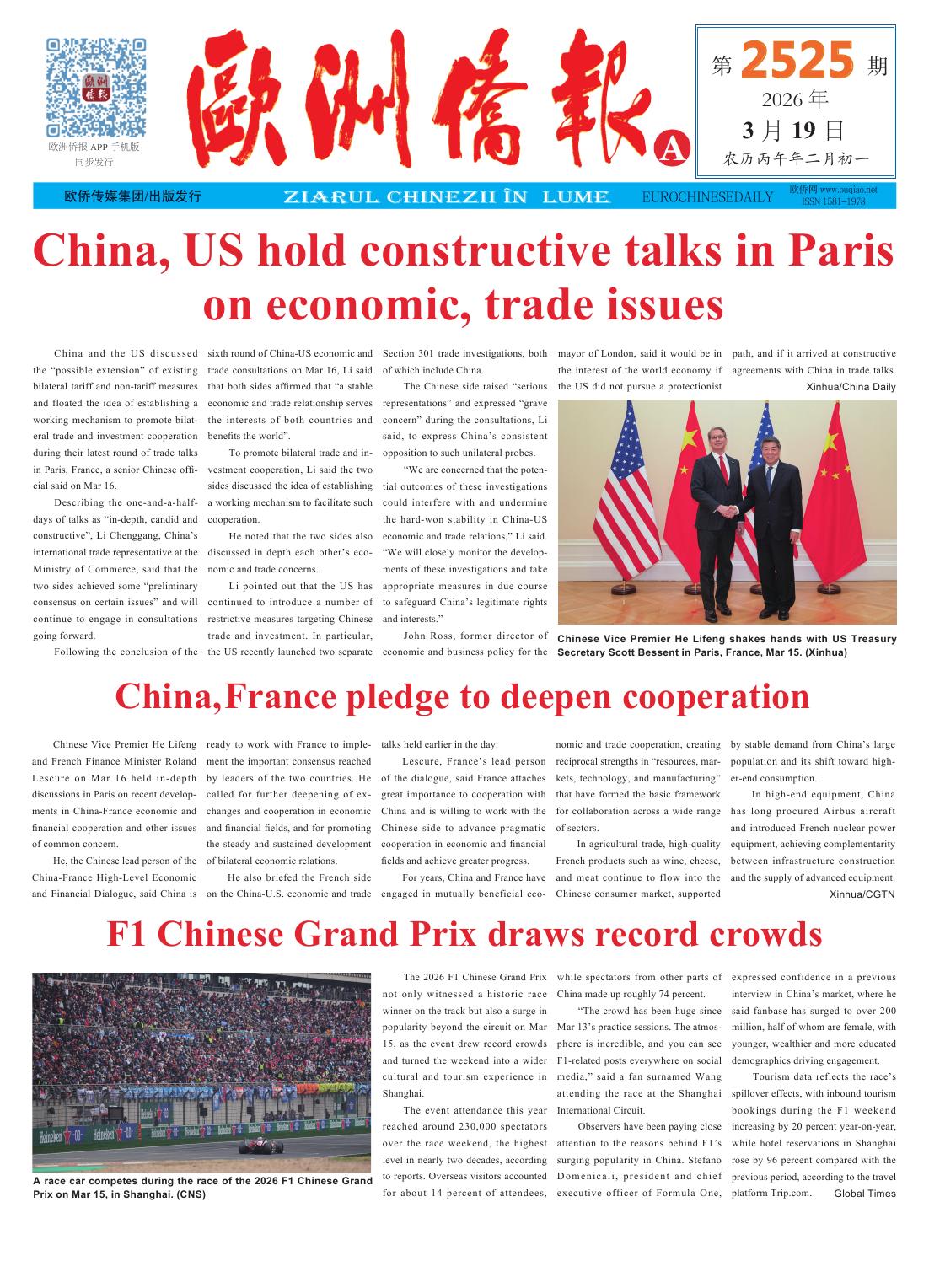 2026年3月19日发行2525期《欧洲侨报》电子版
