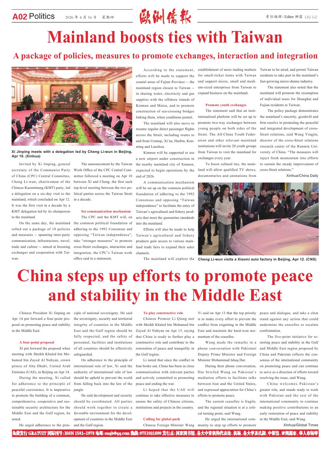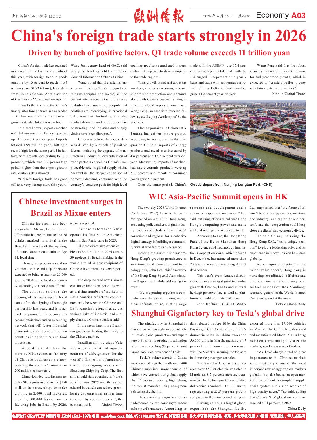 2026年4月16日发行2527期《欧洲侨报》电子版