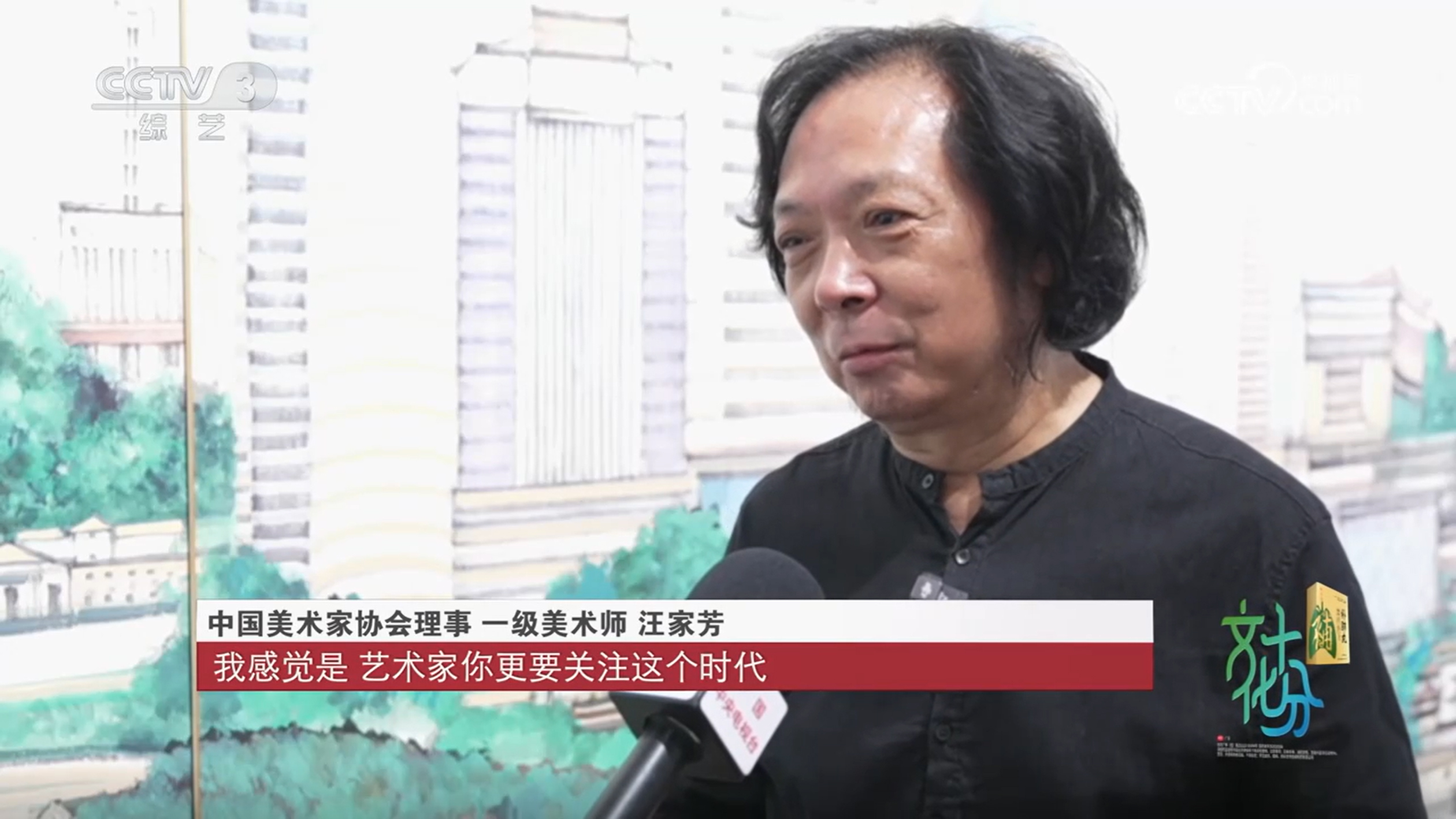 中国美术家协会理事 一级美术师 汪家芳:为什么要叫行观?我感觉是,艺术家你更要关注这个时代,每天都在发展,每天都在更迭。我感觉应该用山水画来体现城市山水的精神,所以我后来就把城市作为(承载)山水精神(的)一种载体。