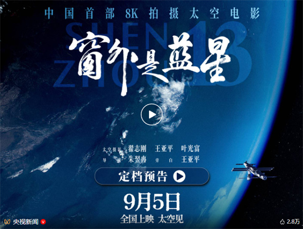 由中国中央广播电视总台领衔出品的中国首部8K太空实拍纪录电影《窗外是蓝星》,成为中国太空纪录电影出海的首部作品,在英国、德国、匈牙利、墨西哥等多个国家亮相。