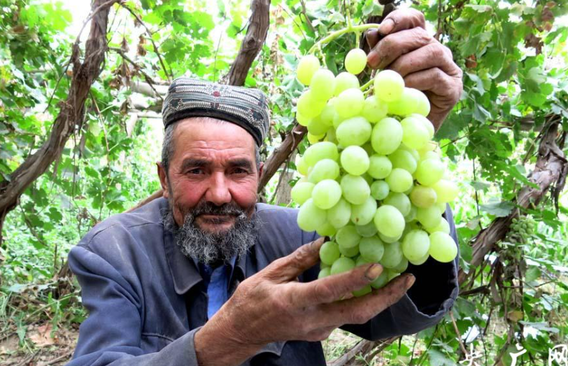 阿克苏市游客 董江红:“我是第一次来,特别激动,来了之后也有各种各样的节目,也是非常的热闹,拍照地点也是有特别多,周围是各种的葡萄藤,葡萄架,我今天也买了点葡萄,这个葡萄是我觉得很好吃的,水分也特别多。”