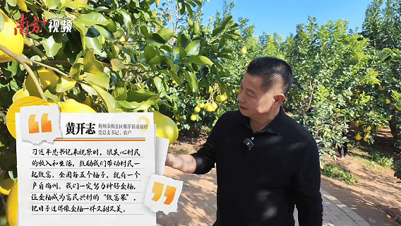“习近平总书记来视察时,很关心村民的收入和生活,鼓励我们带动村民一起致富。全国每五个柚子,就有一个产自梅州。我们一定努力种好金柚,让金柚成为富民兴村的‘致富果’,把日子过得像金柚一样又甜又美。”