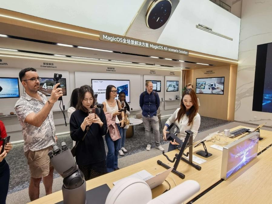 选择荣耀作为采风首站,绝非偶然。作为全球领先的智能终端品牌,荣耀在智能手机、AI及影像领域的持续深耕,使其成为“深圳智造”走向全球的闪亮名片。步入荣耀深圳全球总部,创作者不仅能近距离捕捉“1+8+N”的全场景智慧生态,更能聚焦深圳科创从研发到市场的惊人速