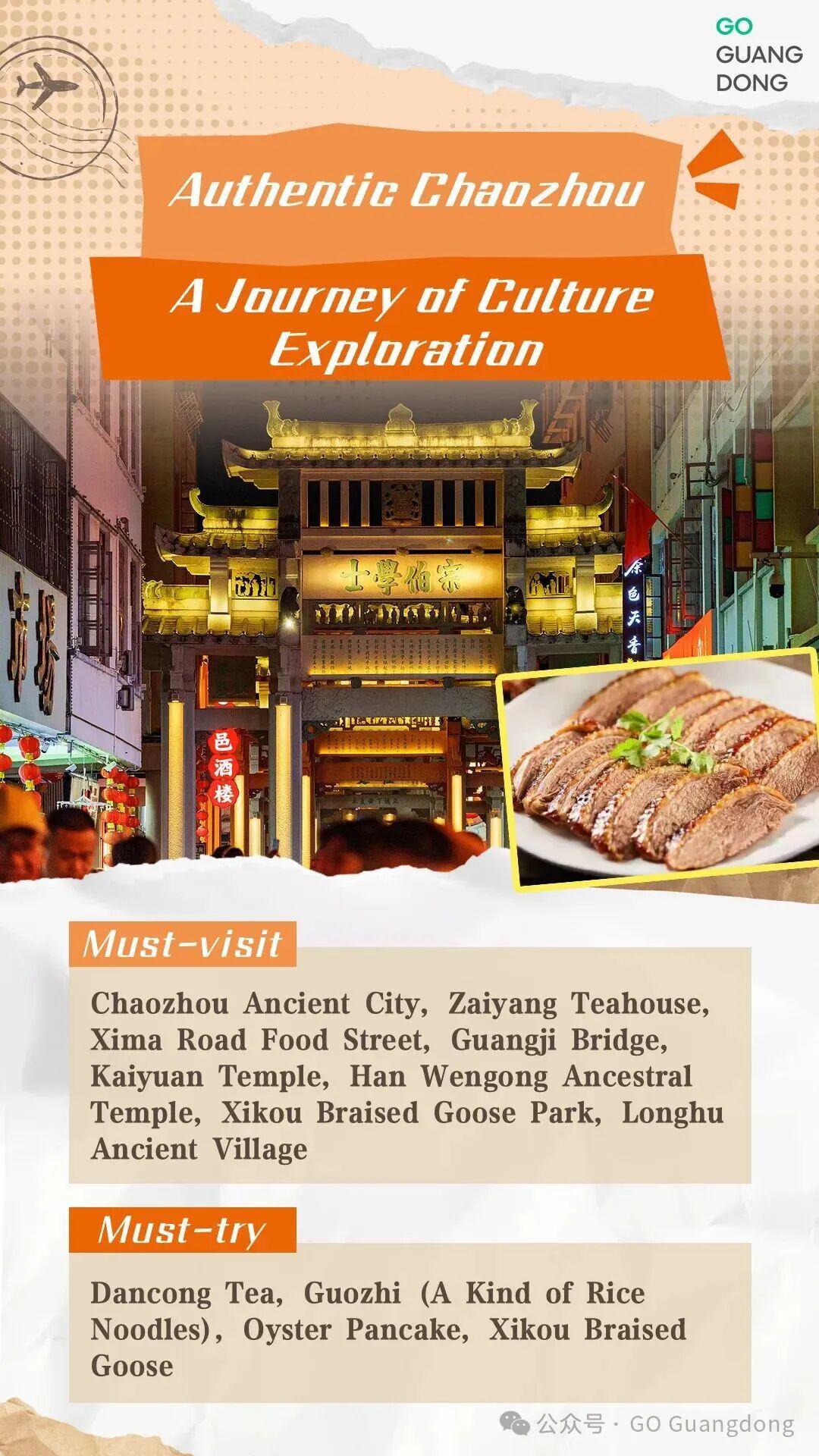 Wandering through Chaozhou, historic relics such as Paifang Street, Guangji Bridge and Han Wengong Ancestral Temple, have been well-preserved, making a living community. Take a break, along the ancient streets, you may take a sip of Dancong Tea at the Zaiyang Tea House while enjoying a Chao Opera. And try some local specialties, such as Guozhi and oyster pancake.