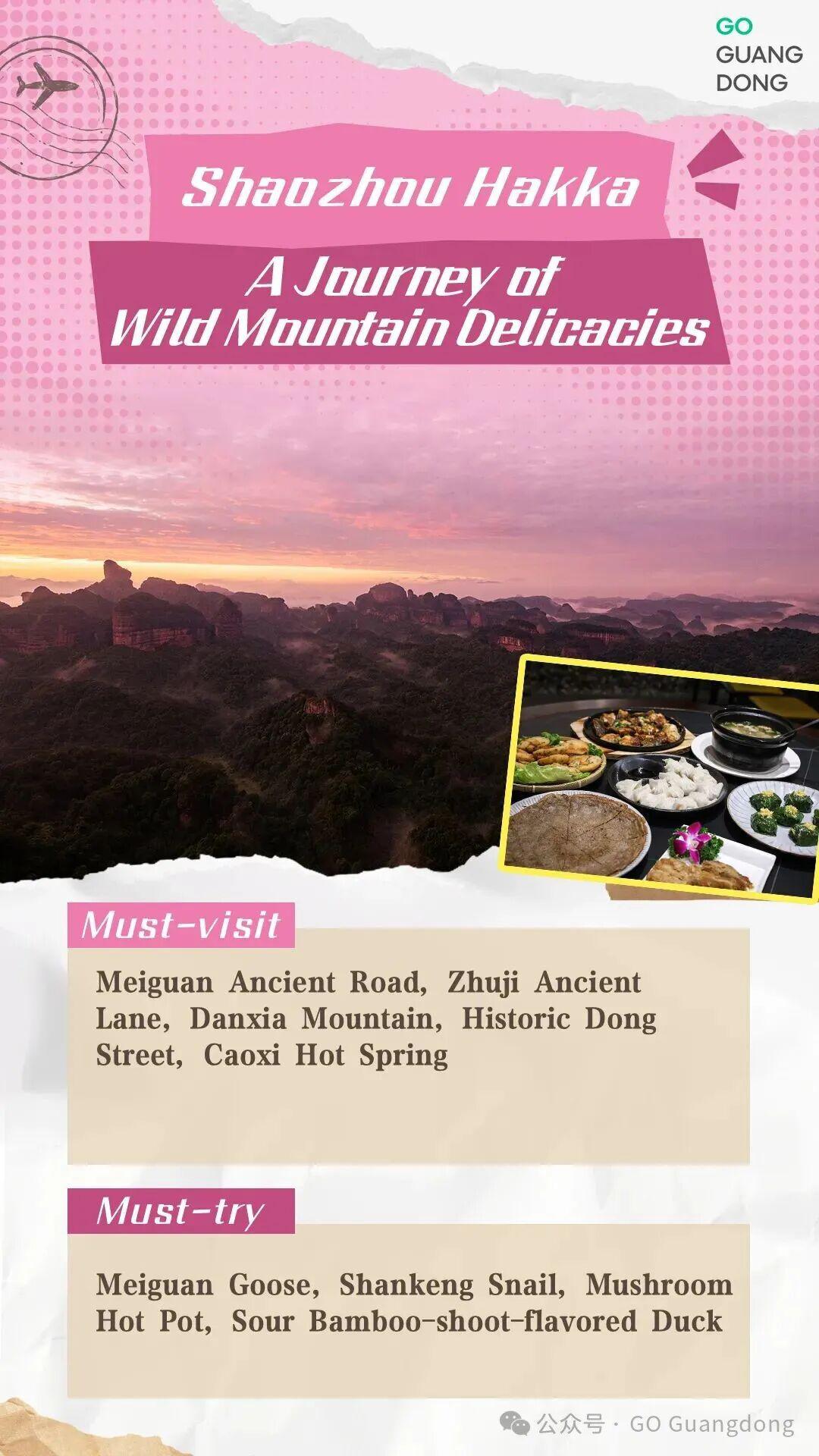 Challenge the perception that Cantonese food is not spicy in Shaozhou, Shaoguan. The Meiguan Goose on Meiguan Ancient Road and Zhuji Ancient Lane packs a serious punch. More fresh wild mountain delicacies such as snails, mushrooms, and bamboo-shoot-flavored duck are also provided.