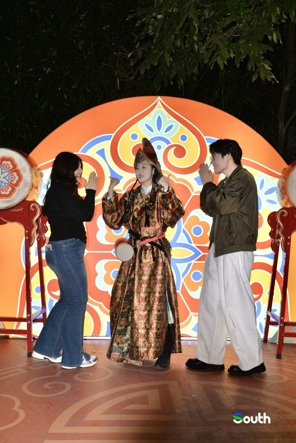 Beyond the lanterns, the park transforms into an interactive cultural space. We joined a mini "mission game" where we learned a Tang Dynasty greeting gesture, matched spices inspired by ancient trade, grabbed a blessed flower, and even tried a Tang-style dance. It was slightly awkward. We laughed. But that's the beauty of it—festivals aren't meant to be observed quietly. They are meant to be experienced.